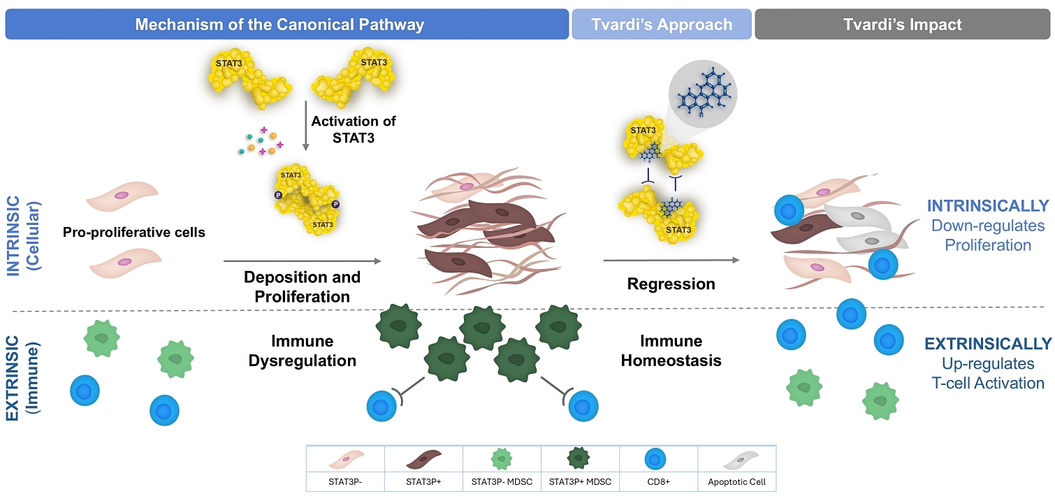 Based upon Tvardi’s founders’ seminal work and deep understanding of the transcription factor, STAT3, Tvardi has designed an innovative approach to directly inhibit STAT3, a highly validated, yet historically undruggable target. Leveraging this expertise, Tvardi is developing a pipeline of STAT3 inhibitors with a differentiated mechanism of action and convenient oral dosing. The company is conducting clinical trials with TTI-101 in hepatocellular carcinoma (NCT05440708) and TTI-109 in healthy volunteers.